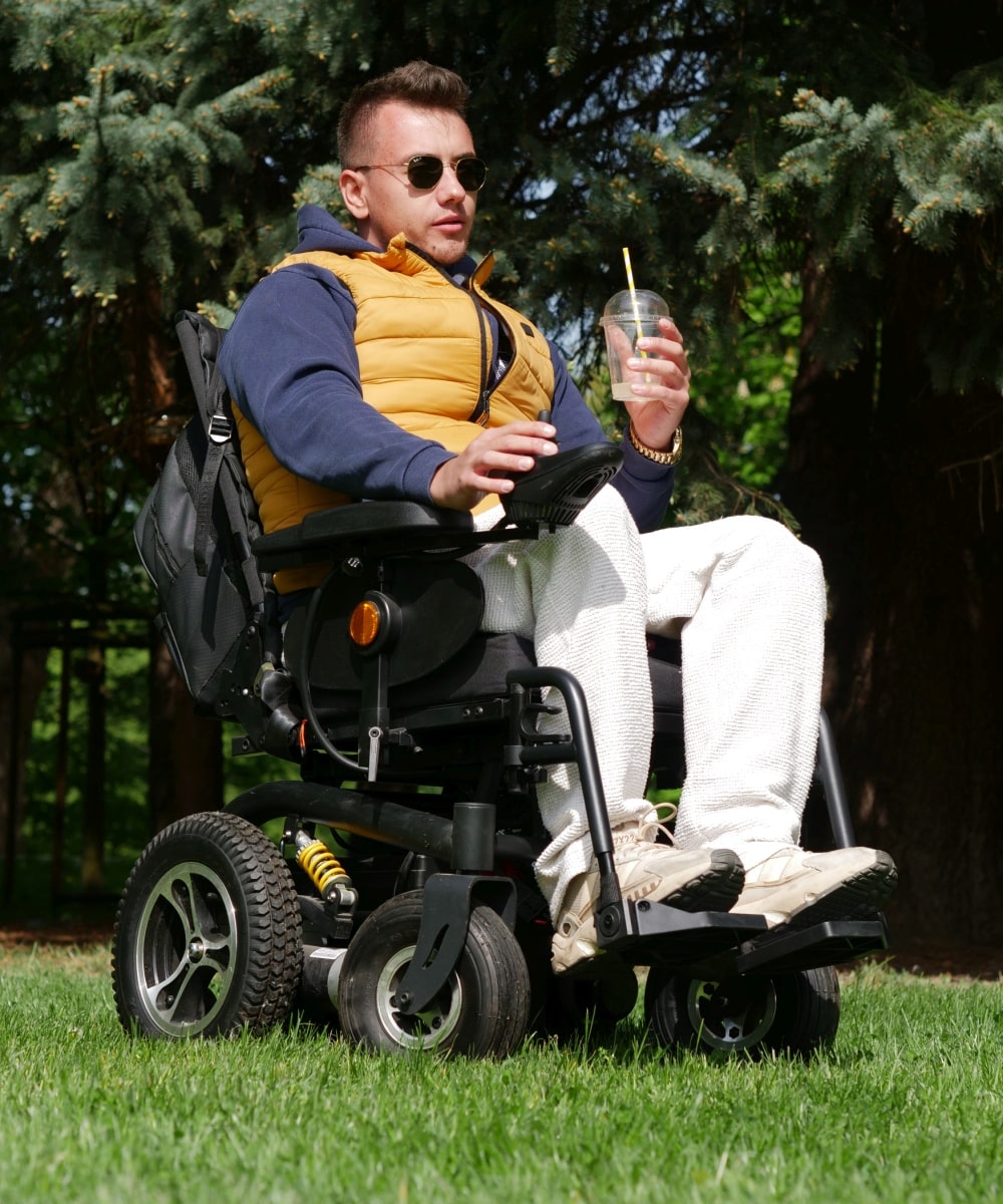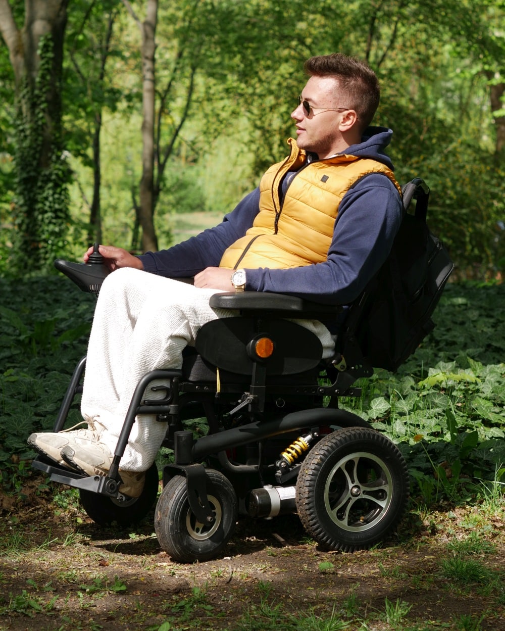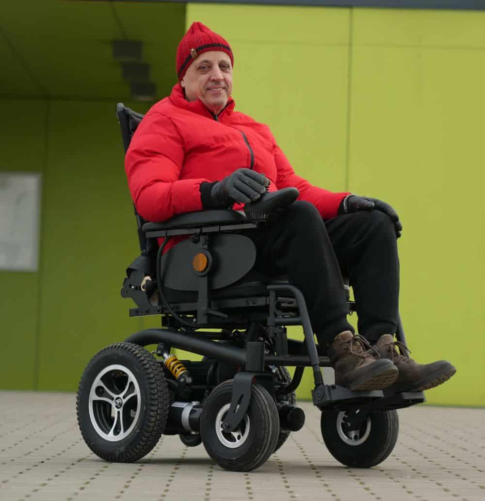 Jego solidna konstrukcja oraz zaawansowane rozwiązania techniczne umożliwiają płynną jazdę zarówno w pomieszczeniach, jak i w trudnych warunkach terenowych. Dzięki zastosowaniu dwóch silników o mocy 320W, wózek osiąga prędkość do 8 km/h, co sprawia, że doskonale radzi sobie z codziennymi wyzwaniami, gwarantując jednocześnie stabilność i bezpieczeństwo.